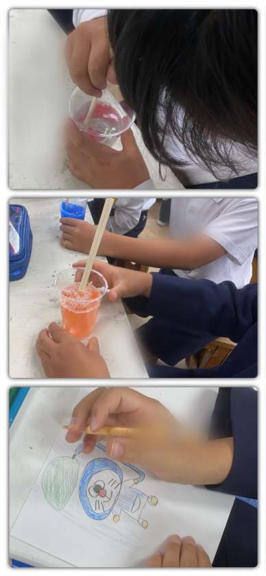 家庭科クラブでは、4年生にとって初めての裁縫でした。糸が何回か絡まっている人もいましたが、針をすすめながら楽しんで取り組んでいました。