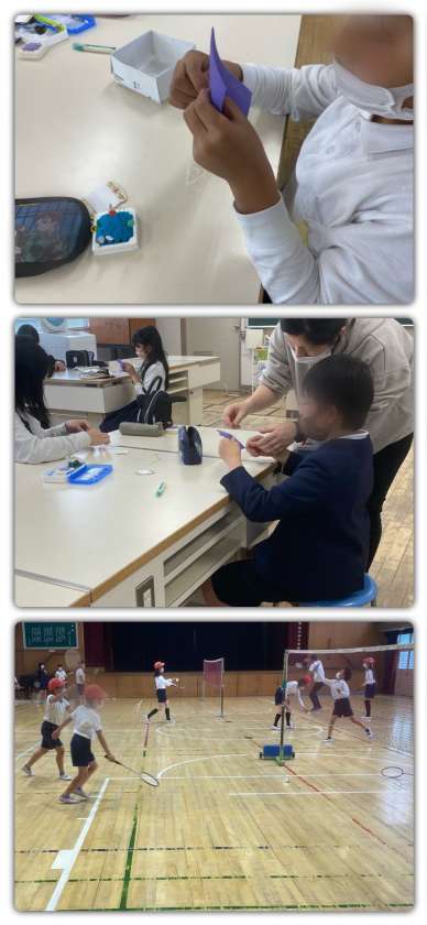 この時間、あいにくの雨のため、屋外活動のクラブは、室内で仲間づくりの活動を行いました。