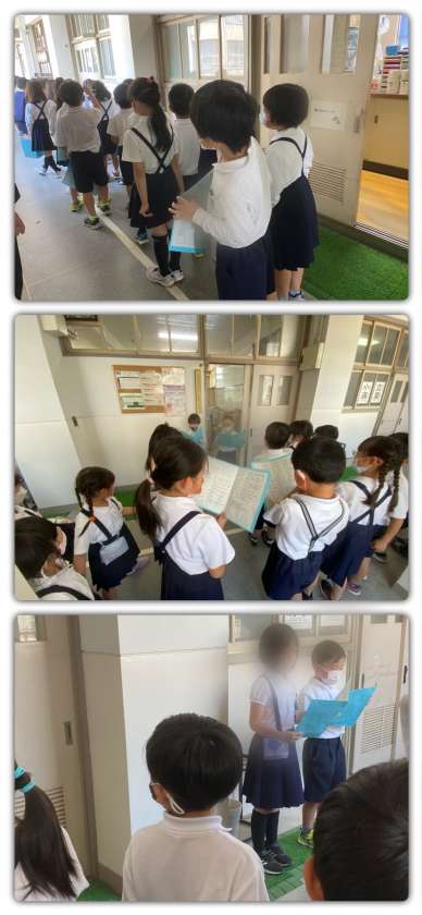 1年生は、2年生に連れられてとても穏やかに学校のいろいろな場所を教えてもらってたんけんを行っていました。