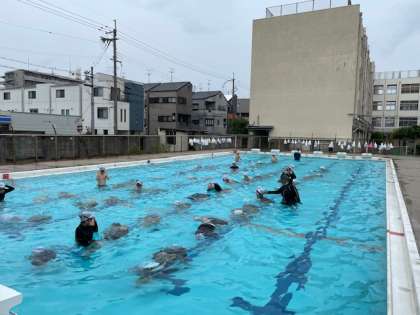 水に慣れて、自分の命を守る学習につなげていきます。