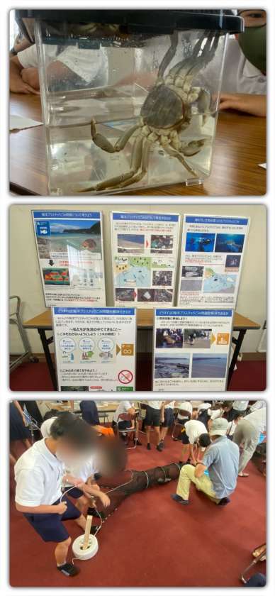 生き物の特徴や、生息している場所について学び、資料と見比べて何の生き物なのかを考えているところです。