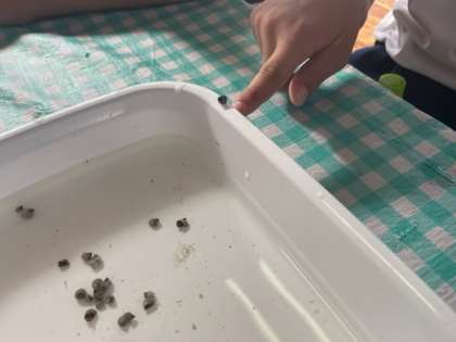 陸にあがろうとする性質があるそうです。 すぐに、あがってくる個体が、ありました。