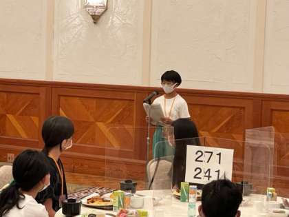 代表の児童と一緒にあいさつをして、いただきまーす。