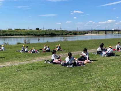 大和川の河川敷で、お弁当タイムです。