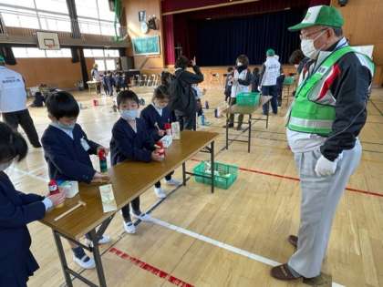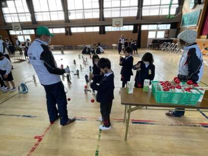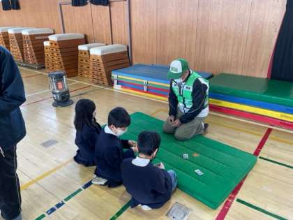 2月6日の2.3時限目、登校見守り隊のみなさんから、昔の遊びを教えていただきました。