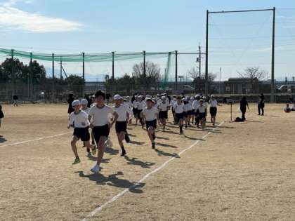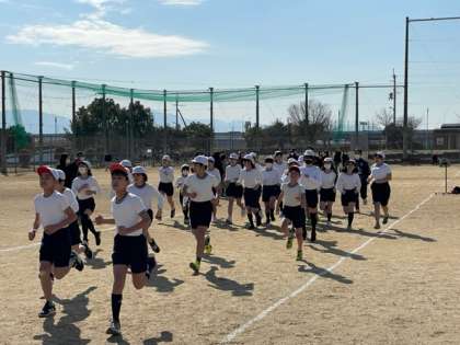 6年生か、川辺大和川公園のグランドで、かけ足大会を行いました。