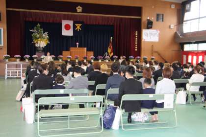 本日、新1年生40名を迎えて「令和5年度 入学式」(本校第45回目)を挙行いたしました。雨天でしたが、あたたかい春のよき日、子どもたちは元気いっぱい、笑顔いっぱいで今日を楽しみにしていたことが伝わりました。校長先生、PTA会長からのお話もとてもよい姿勢で聞くことができていて立派です。