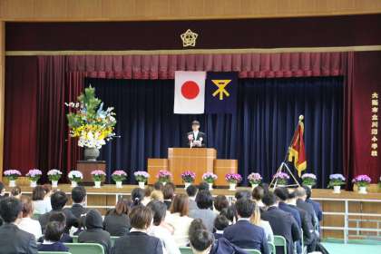 式の最後には、新2年生が川辺小学校の1年間について言葉や歌、ダンスで踊ったりしながら1年生にわかりやすく伝えてくれました。
