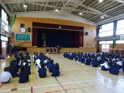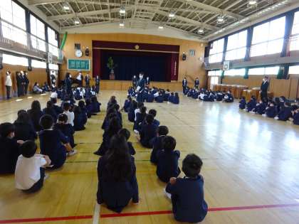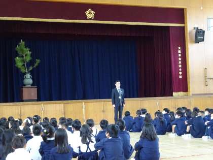 数年ぶりにみんなが一斉に講堂に集まっての始業式が行われました。