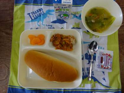 🔸じゃがいものミートグラタン🔸レタスのスープ🔸みかん