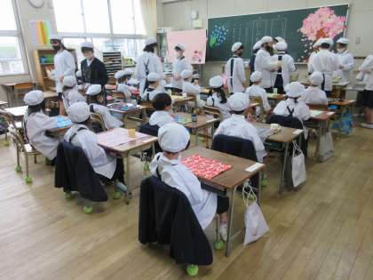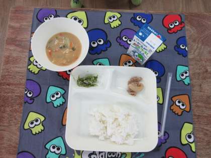 今週は6年生が1年生と一緒に給食の準備をしてくれています。6年生のみなさん、ありがとう。