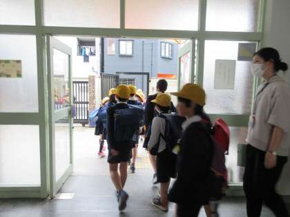1年生を各地区のリーダーが各地区の教室へ連れて行きました。