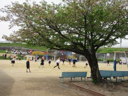 授業が終わると元気よく運動場で楽しく活動をして過ごしている子どもたちです。