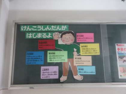 みんなで保健室へ行き、先生からお話を聞いた後、身長と体重をはかりました。