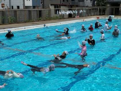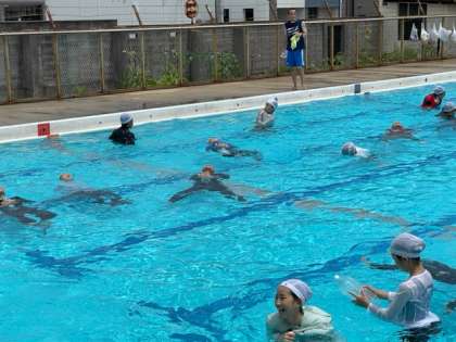 7月18日に、5.6年生が服を着たままで水に落ちた時に、どのようにして命を守るかという授業を受けました。