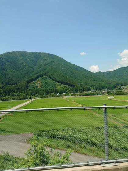 少しずつ目的地に近づいています。車窓から見える景色も緑ばかりです。 そろそろ、二回目の休憩です。