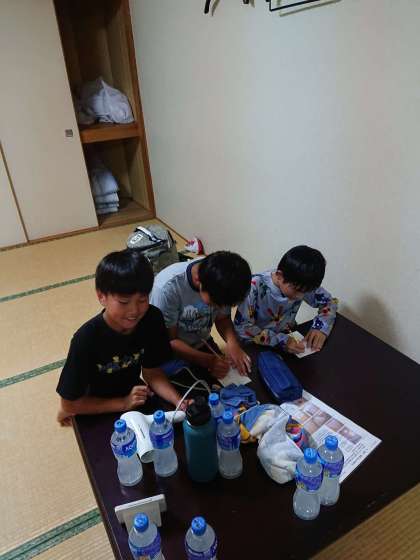 森林散策や川遊び、高原遊びなどを終えて、汗をいっぱいかいた子どもたちは宿舎の大浴場ですっきりしました。