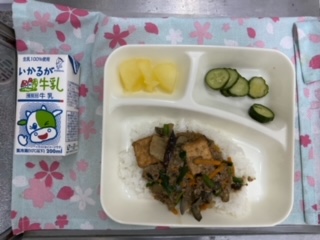 ?マーボあつあげ丼?あっさりきゅうり?りんご?牛乳