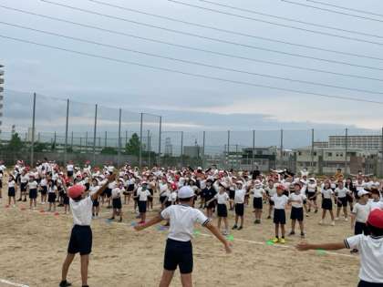 10月5日 1時間目、川辺大和川公園のグラウンドで、運動会の全体練習をしました。