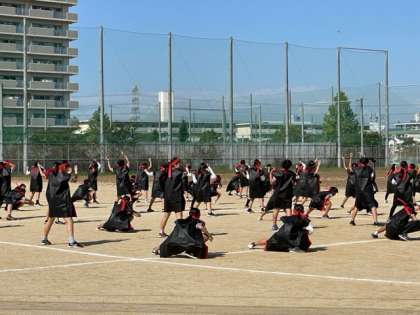 10月18日、秋晴れのもと、大和川公園のグラウンドで、5.6年が演技の練習をしました。