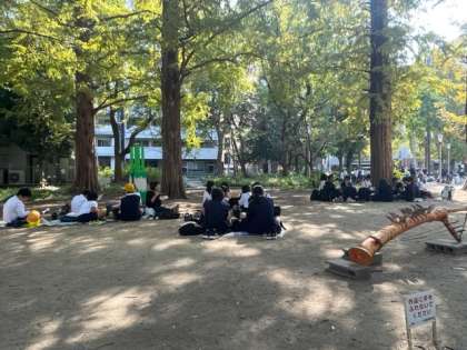 靭公園で昼食をとってから、帰校します。