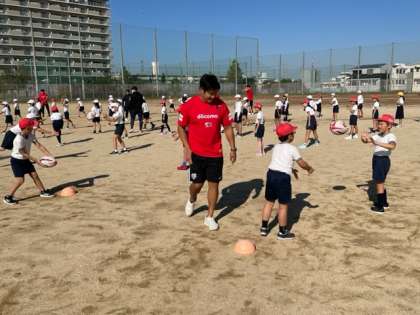レットハリケーンズ大阪の皆さんにきてもらい、ラグビーの夢授業が、行われました。