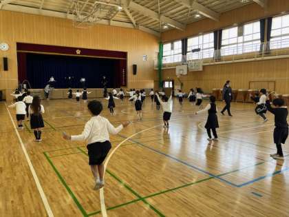 今、学年ごとに 縄跳び大会を実施しています。学年に応じていろいろな飛び方や、飛ぶ時間に挑戦します。