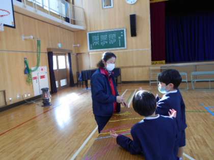 2月6日(火)の2.3時限目に登校見守り隊のみなさんから、昔の遊びをたくさん教えていただきました。