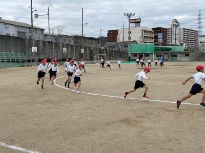 学年休業のために、延期になっていた3年生のかけ足大会を2月8日に行いました。寒い中たくさんの応援ありがとうございました。