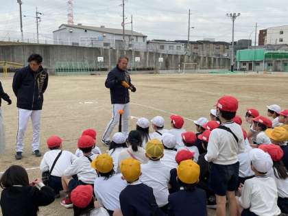 オリックス野球クラブから、元プロ野球選手のみなさんに来ていただき、野球教室の特別授業がありました。