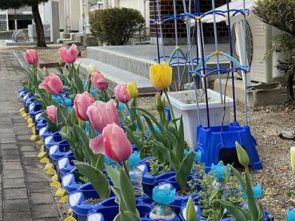 新2年生のチューリップが、きれいに咲いています。 明日、4月5日は入学式です。