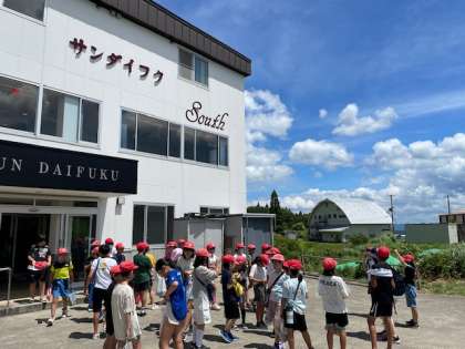 避難訓練をして、今から、魚つかみに出発します。