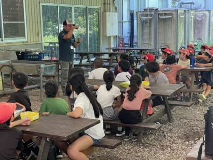 ウッドクラフトです。説明を聞いて、自分だけのキーホルダーを作ります。