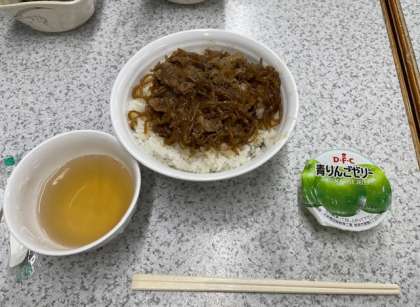 いよいよ、林間学習最後の食事です。3日目の昼食は、牛丼です。