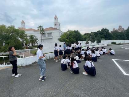 避難訓練 ホテル前の駐車場までの経路を、確認しました。 この後、各部屋で入浴の予定です。