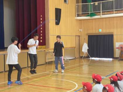 ダブルダッチチーム Fat man Crewのお二人にきていただき、夢授業が行われました。