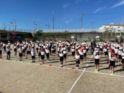 10月10日の1時間目、全体練習を行いました。晴天の元、開会式と閉会式のながれを確かめました。