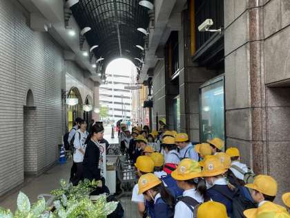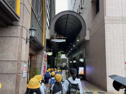 小雨が、降ってきました。アーケード下で弁当タイムです。