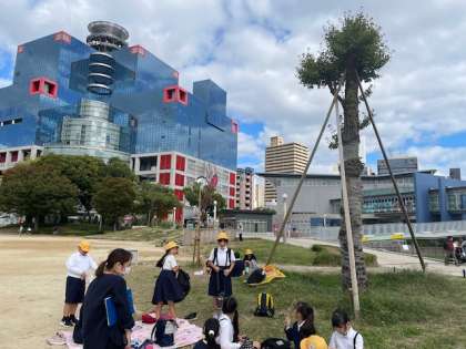 扇町公園で、お弁当タイムです。