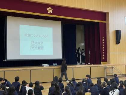 今週は、給食週間てす。1月23日木曜日の児童集会は、給食委員会のみなさんが、給食にまつわるクイズをしてくれました。