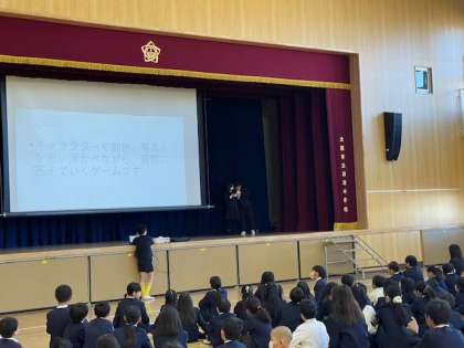 2月13日(木)の児童集会は、集会委員の人が質問をしていき、全員が「あっているか?」「まちがっているか」を示してくれます。何回かの質問で、表示されていることを当てるというゲームでたのしみました。