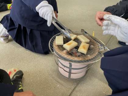 2月28日(金)の2・3時限目に、3年生が昔の道具「七輪体験」を行いました。地域の見守り隊の方に来ていただき指導していただきました。