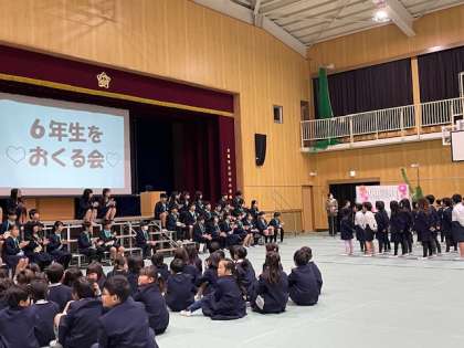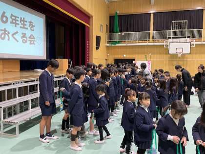 1年年生から、ことばと歌、そして6年生一人ひとりにメダルが贈られました。