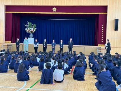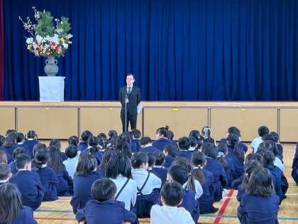 4/8(火) 令和7年度の始業式を行いました。今年度の児童数は251名です。2年以上の学年が体育館に集合してました。