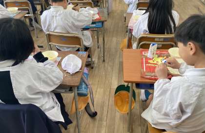 「今日の給食は何かな?」「今日の給食は◯◯だよ!」