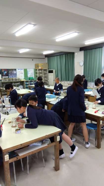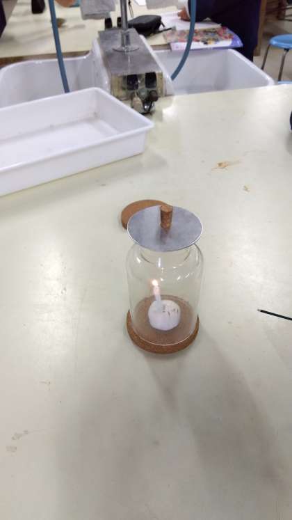 ものの燃え方と上下のすきまの関係を調べる実験をしました。
