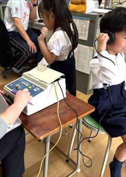 検査のやり方の説明を聞いたあと、2人ずつ検査をしました。