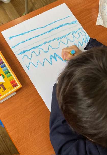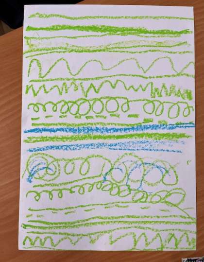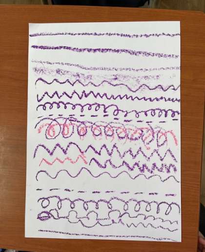 クレパスを使って、いろいろな線をかきました。