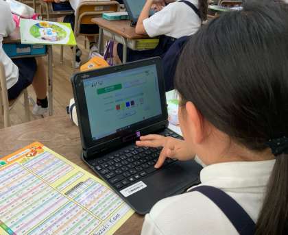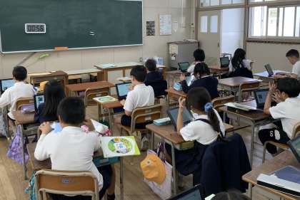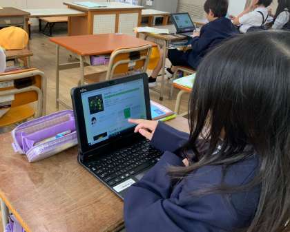 子どもたちは慣れた手つきでタブレットを操作して、インターネット上にある「生き物ずかん」を見て学んでいました。
