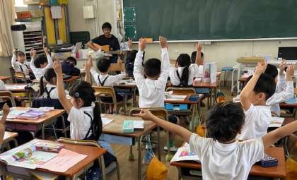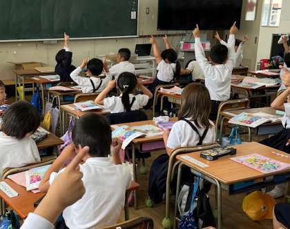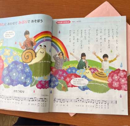 『かたつむり』を伴奏に合わせて、楽しい振り付けをしながら歌っています。